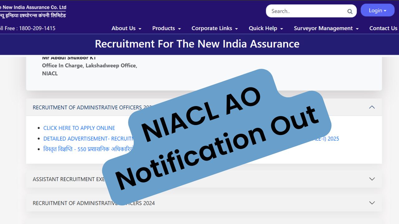 NIACL AO Recruitment 2025 – 550 Vacancies Announced