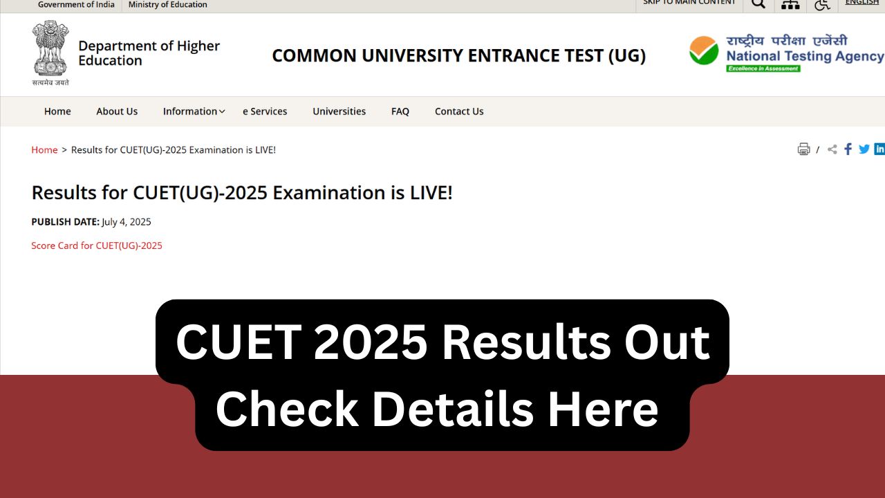Short Description: The National Testing Agency (NTA) has officially declared the results for the Common University Entrance Test Undergraduate (CUET UG) 2025 on July 4, 2025, bringing relief and excitement to over 13.5 lakh aspirants across India and abroad. Exam Overview of CUET 2025: 🏆 Toppers and Percentile Stats: These numbers reflect the intense competition … Read more