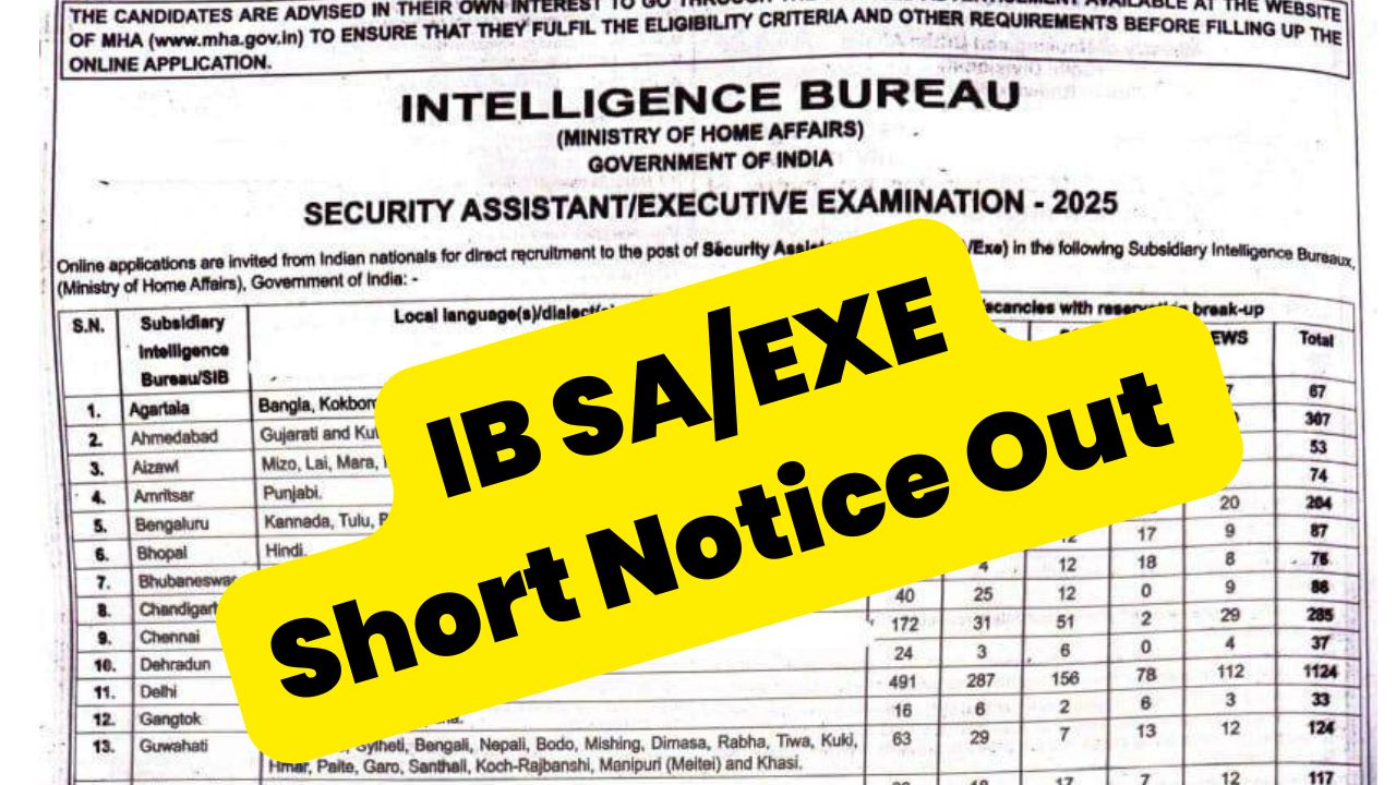 Short Description: The Intelligence Bureau (IB), under the Ministry of Home Affairs, has officially released the Security Assistant/Executive Recruitment Notification for 2025, offering 4987 vacancies across 37 subsidiary offices. This is a golden opportunity for candidates seeking a stable government job in the internal security domain. Eligibility Criteria: To apply for the IB Security Assistant … Read more